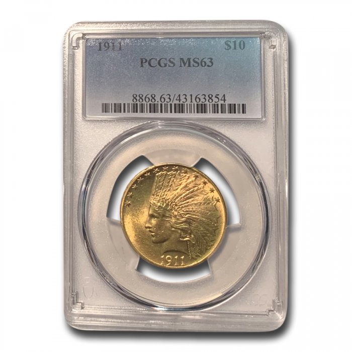 This 1911 $10 Indian Gold Eagle has been certified as MS-63 by PCGS, one of the top two coin grading services. This highly collectible coin is a great addition to any numismatic collection!
