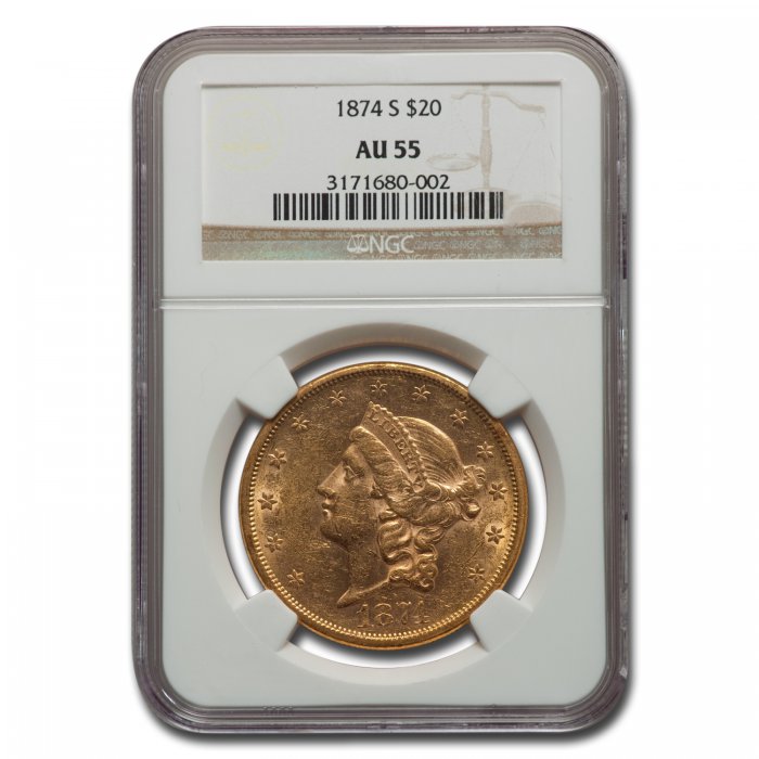 / Buy 1874-S $20 Liberty Gold Double Eagle AU-55 NGC