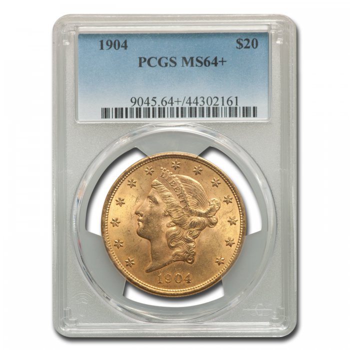 Only $3,329.00 per coin This 1904 $20 Liberty Gold Double Eagle has been certified as MS-64+ by PCGS, one of the top two coin grading services. This highly collectible coin is a great addition to any numismatic collection!