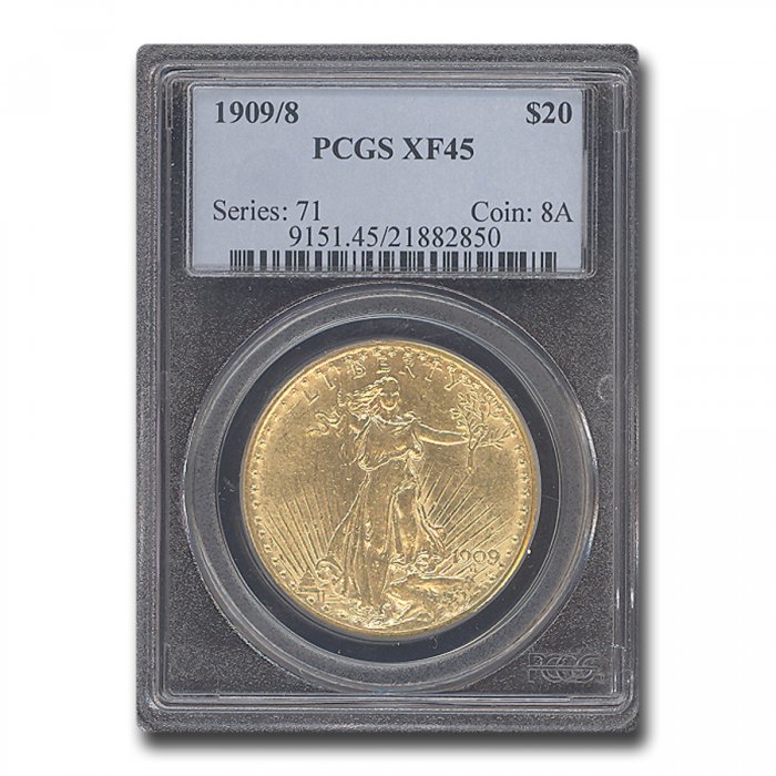 / Buy 1909/8 $20 Saint-Gaudens Gold Double Eagle Overdate XF-45 PCGS