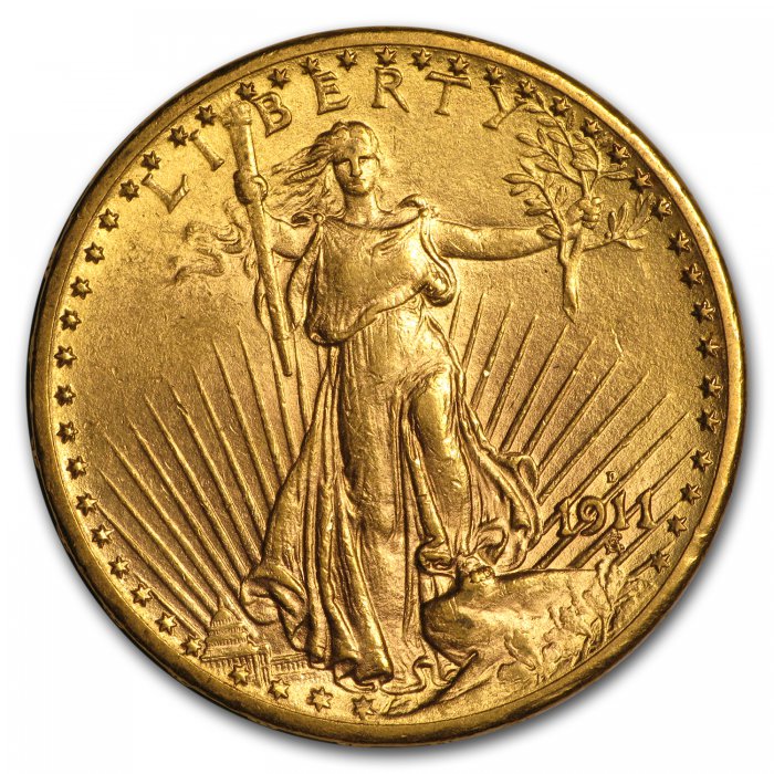 Almost Uncirculated coins have a small amount of wear and retain the majority of their original luster, adding collectibility to the beloved design. Add this $20 Saint-Gaudens Gold Double Eagle to your cart today!