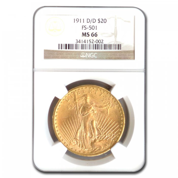 Buy 1911-D/D $20 Saint-Gaudens Gold Double Eagle MS-66 NGC (FS-501)