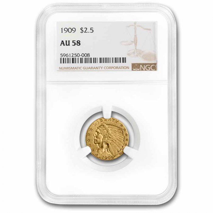 / Buy 1909 $2.50 Indian Gold Quarter Eagle AU-58 NGC