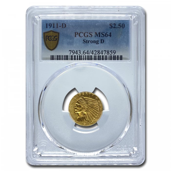 Buy 1911-D $2.50 Indian Gold Quarter Eagle MS-64 PCGS (Strong D)