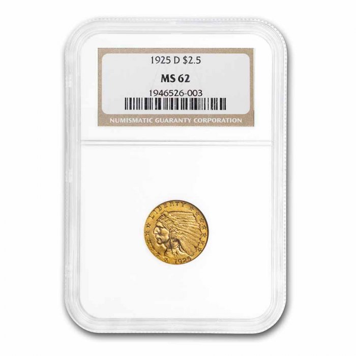 / Buy 1925-D $2.50 Indian Gold Quarter Eagle MS-62 NGC