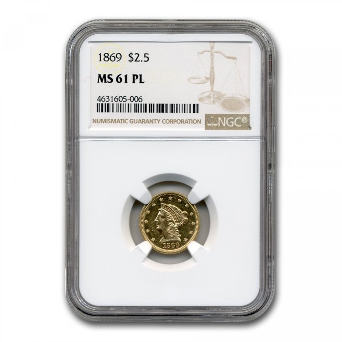 / Buy 1869 $2.50 Liberty Gold Quarter Eagle MS-61 NGC (PL)