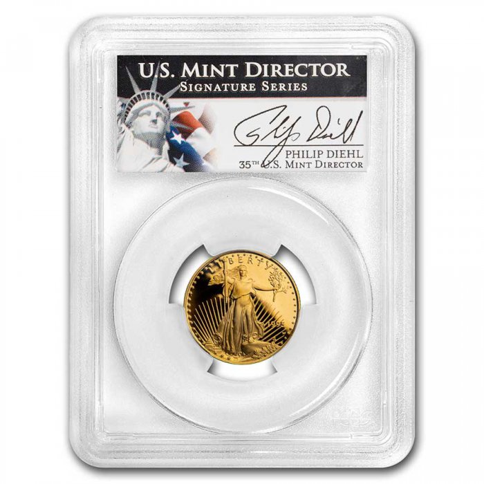 Typically, Proof coins are struck two or more times, producing a very high degree of detail. Proof Gold Eagle coins are collector versions of the U.S. Mint's beloved Gold Eagle bullion coins and have limited mintages, adding to their collectibility.