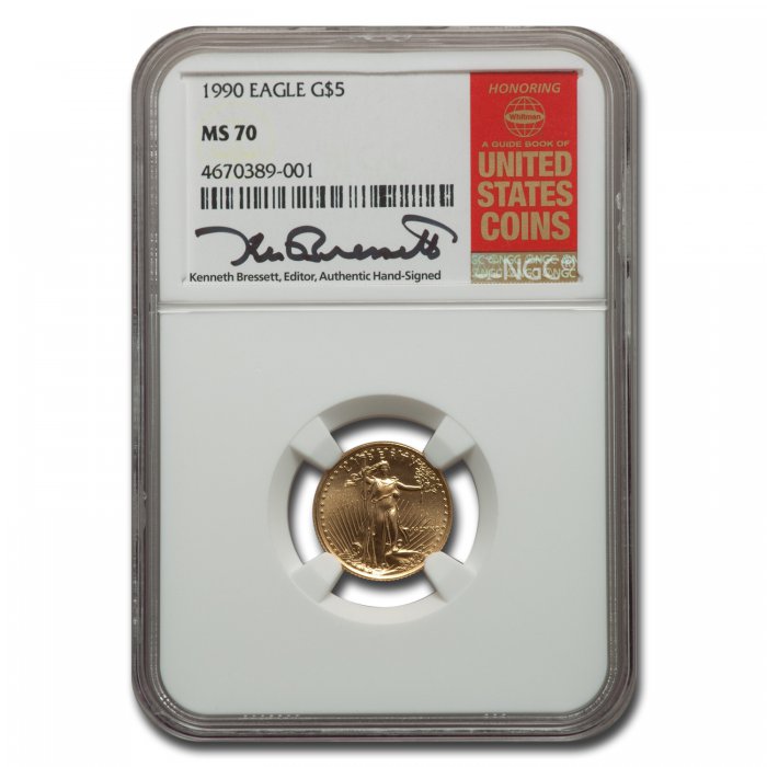 The Gold American Eagle features an iconic, classic design that is often considered one of the most beautiful designs on American coinage. This example has been certified by NGC, adding collectibility on top of bullion appeal.
