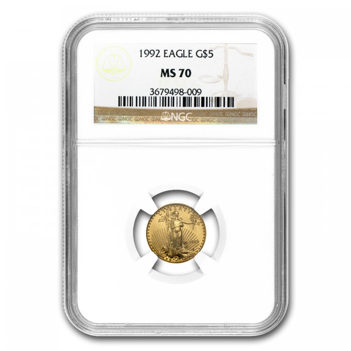 The Gold American Eagle features an iconic, classic design that is often considered one of the most beautiful designs on American coinage. This example has been certified by NGC, adding collectibility on top of bullion appeal.