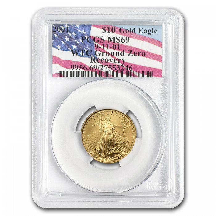This 1 oz American Gold Eagle was recovered from Ground Zero inside the vaults of the World Trade Center, certified to be straight from the vaults under heavy security, loaded into Brink's armored vehicles and sent to be cataloged, graded by by PCGS.