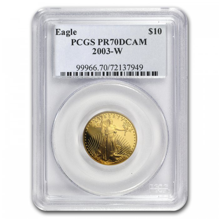 With an iconic design and 1/4 oz of Gold, the 2003 Gold Eagle combines collectibility with collector appeal. The Gold American Eagle is based on Augustus Saint-Gaudens' 1907 $20 Gold Double Eagle, showing a proud Lady Liberty.