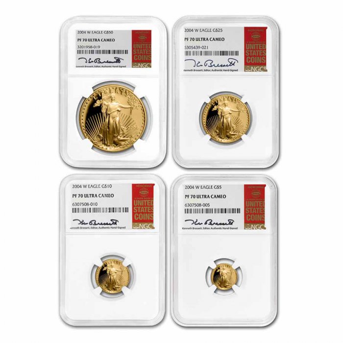 Proof Gold Eagle coins feature the same classic design as the U.S. Mint's beloved Gold Eagle bullion coins but have limited mintages. Each coin has been graded a flawless PF-70 by NGC, one of the top grading services in the industry.