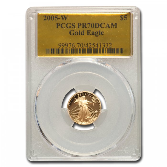 Each of these examples has been certified as perfect PR-70 by PCGS, one of the top coin grading services, adding further collectible appeal. These Proof Gold Eagle coins are minted at the West Point Mint and bear the "W" mint mark.