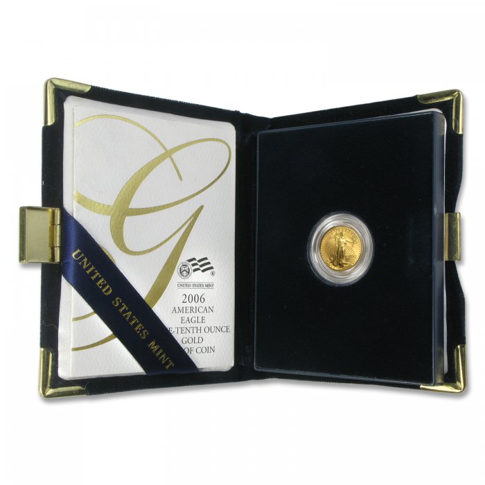 Proof Gold Eagle coins feature the same classic design as the U.S. Mint's beloved Gold Eagle bullion coins but have limited mintages, adding to their collectibility. With 1/10 oz actual Gold weight, these are a great addition to any Gold coin collection!
