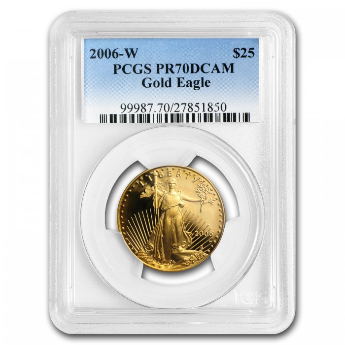 Showing a proud Lady Liberty, the Gold American Eagle is based on Augustus Saint-Gaudens' 1907 $20 Gold Double Eagle. With an iconic design and 1/2 oz of Gold, the 2006 Gold Eagle combines collectibility with collector appeal.
