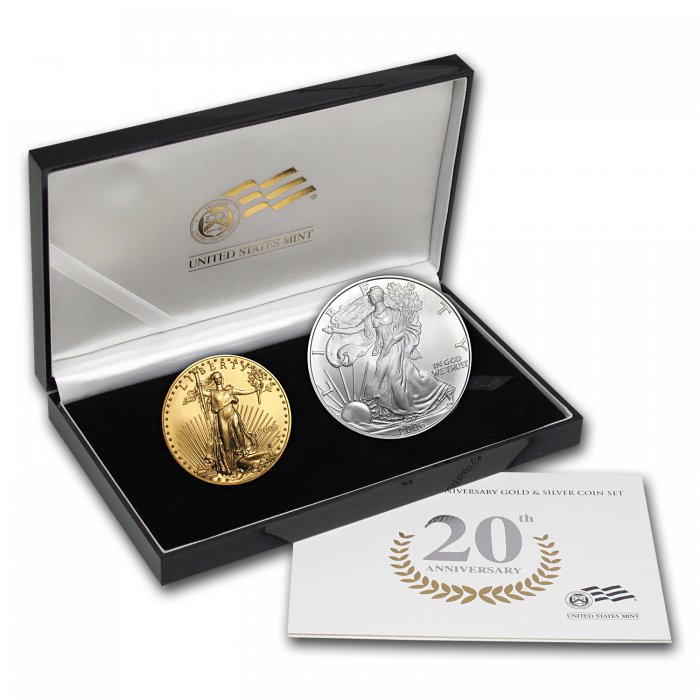 These 2-coin sets were issued in 2006 to commemorate the 20th Anniversary of the American Eagle Gold & Silver coins which were first released in 1986.