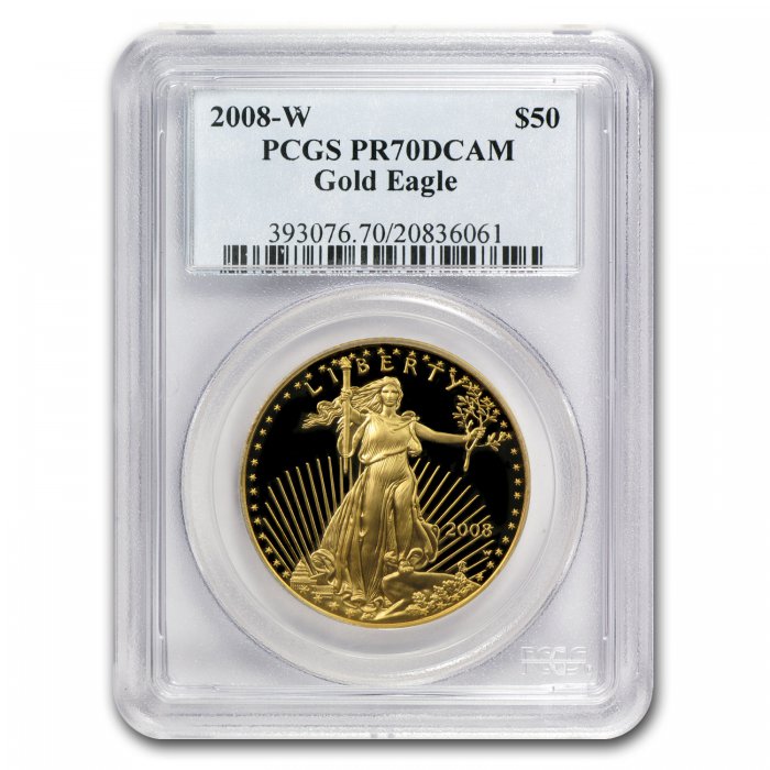 Each of these examples has been certified as perfect 70 by PCGS, one of the top coin grading services, adding further collectible appeal. These Proof Gold Eagle coins are minted at the West Point Mint and bear the "W" mint mark.