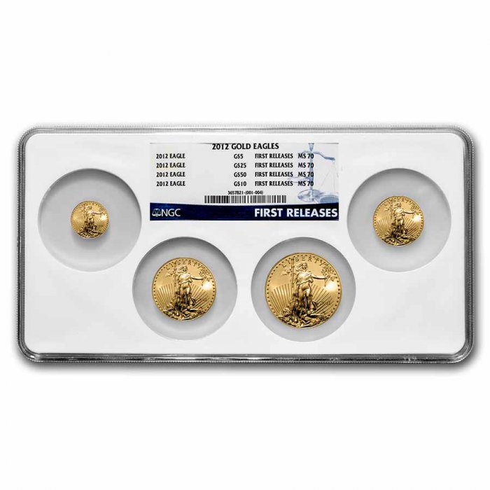The Gold American Eagle is based on Augustus Saint-Gaudens' 1907 $20 Gold Double Eagle, showing a proud Lady Liberty. With an iconic design and NGC certification, this 2012 Gold Eagle set combines collectibility with bullion appeal.