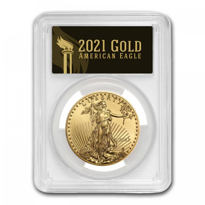 The Gold American Eagle is based on Augustus Saint-Gaudens' 1907 $20 Gold Double Eagle, showing a proud Lady Liberty. With an iconic design and 1 oz of Gold, the 2021 Gold Eagle combines collectibility with bullion appeal.