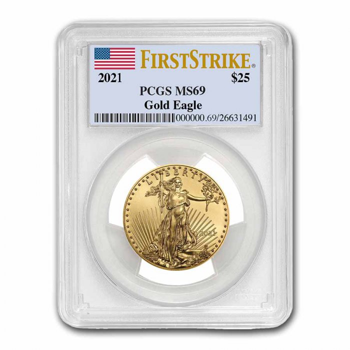 The Gold American Eagle features a stunning design that is often considered the most beautiful design of American coinage. This example is certified a near perfect MS-69 by PCGS and encapsulated in a sealed holder to protect your investment.
