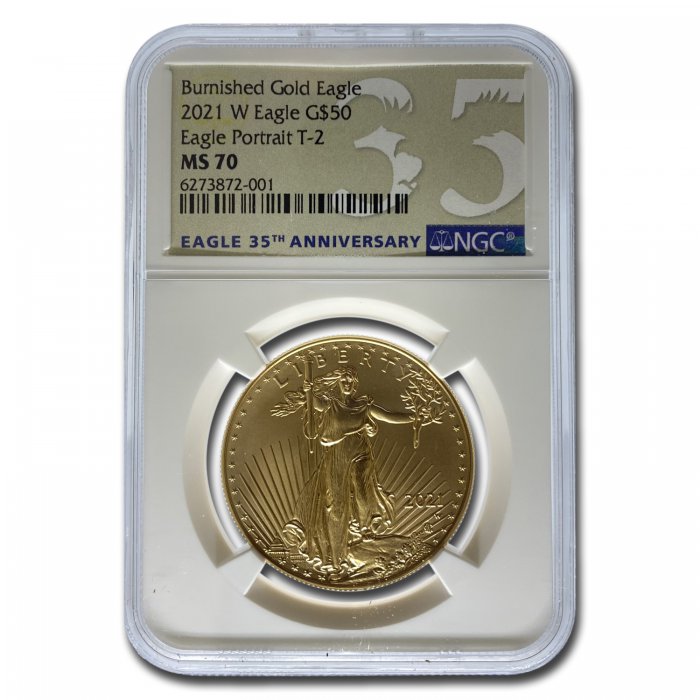 The 2021 Burnished Gold Eagle is the first in this low mintage series to feature the new Eagle design, introduced in mid-2021, the first major redesign of this iconic series.