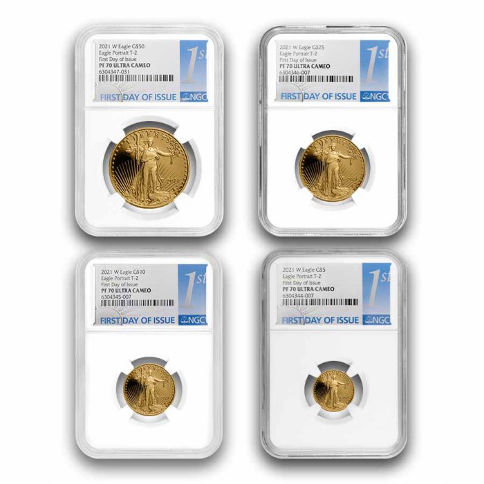 For the first time in more than 30 years, these proof Gold eagles feature a new reverse design, crafted in the highest degree of detail which have been certified a flawless PF-70 UCAM by NGC, with the First Day of Issue designation.