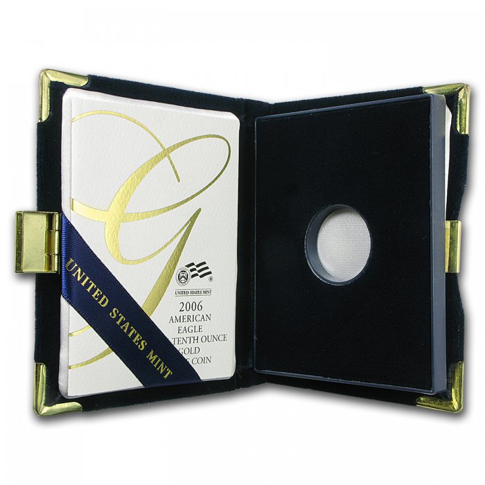 This is the official 2006 U.S. Mint box for 1/10 oz Proof Gold Eagles minted at West Point. These make great gifts for the Gold Eagle collector in your life or are ideal for displaying your own Gold Eagle coins.