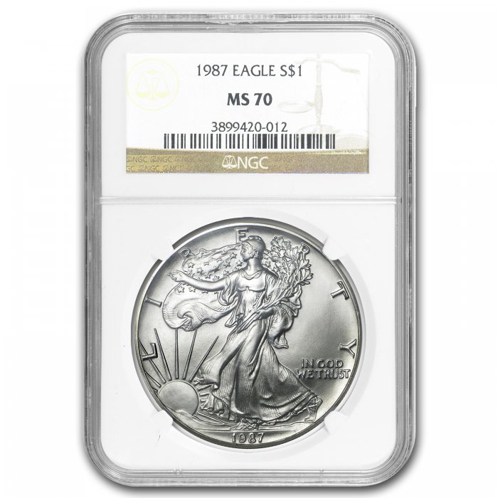 While relatively easy to assemble with uncertified coins, the Silver Eagle set presents a daunting challenge in MS-70 due to low populations for many years. With a population of 1,837, the 1987 is a tough issue in MS-70.