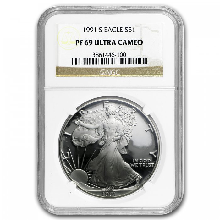 Since 1986, the Silver American Eagle has been the most popular Silver coin in the United States. This example has been certified by NGC, one of the top coin grading services, adding collectible appeal to the classic design and .999 fine Silver content.