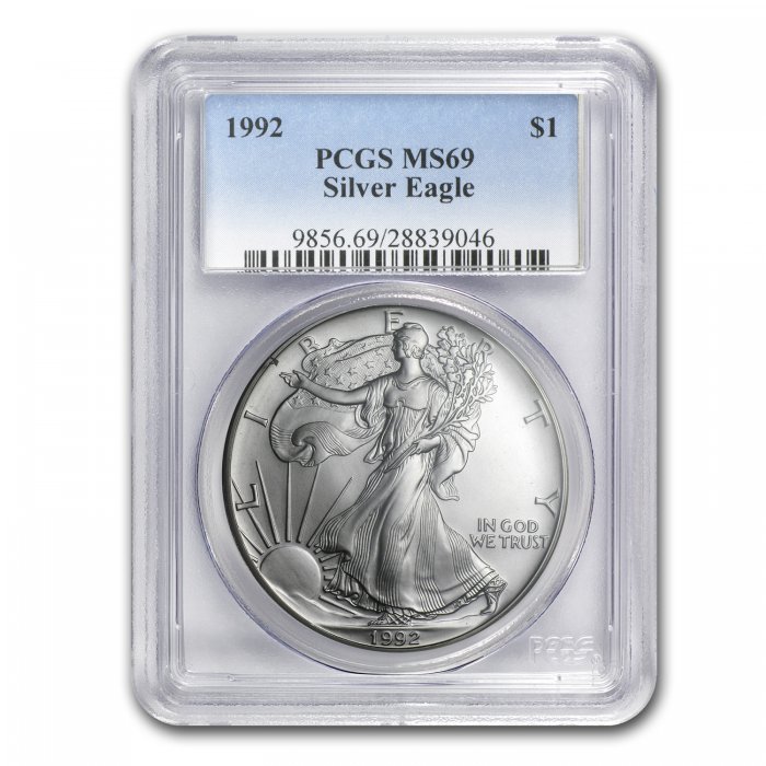 The Silver Eagle is the most popular and recognizable Silver bullion coin in the world. These coins have been graded a near perfect MS-69 by PCGS, the world's premier grading service, adding to their collectibility.