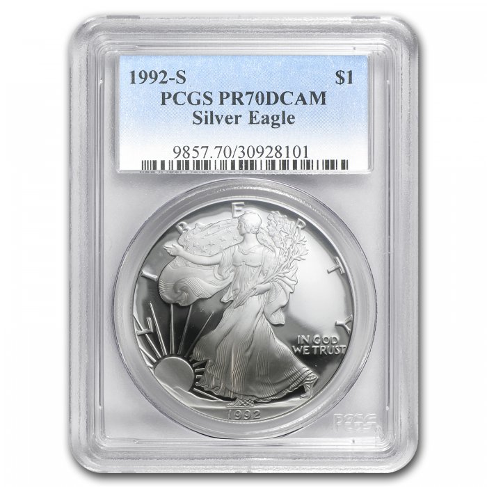 Proof Silver Eagle coins feature the beloved Silver Eagle design in an even more beautiful finish with the same U.S. government guarantee. This American Silver Eagle is a practical purchase for every investor.