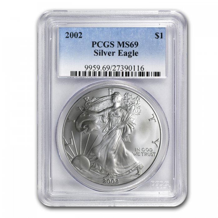 The Silver Eagle is the most popular and recognizable Silver bullion coin in the world. These coins have been graded a near perfect MS-69 by PCGS, the world's premier grading service, adding to their collectibility.