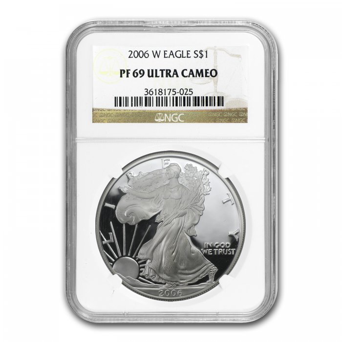 Since 1986, the Silver American Eagle has been the most popular Silver coin in the United States. This example has been certified by NGC, one of the top coin grading services, adding collectible appeal to the classic design and .999 fine Silver content.