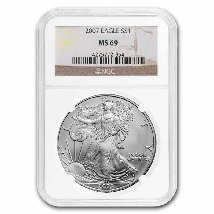 The Silver Eagle is the most popular and recognizable Silver bullion coin in the world. These coins have been graded a near perfect MS-69 by NGC, one of the top two coin grading services, only adding to their appeal.