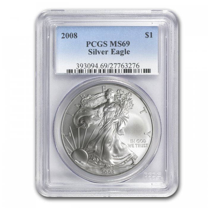 The Silver Eagle is the most popular and recognizable Silver bullion coin in the world. These coins have been graded a near perfect MS-69 by PCGS, the world's premier grading service, adding to their collectibility.