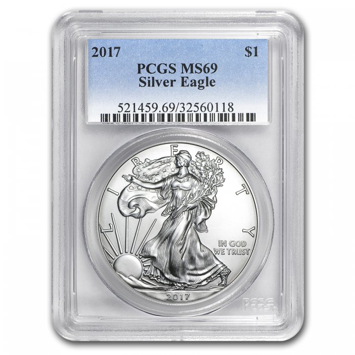 The Silver Eagle is the most popular and recognizable Silver bullion coin in the world. These coins have been graded a near perfect MS-69 by PCGS, the world's premier grading service, adding to their collectibility.