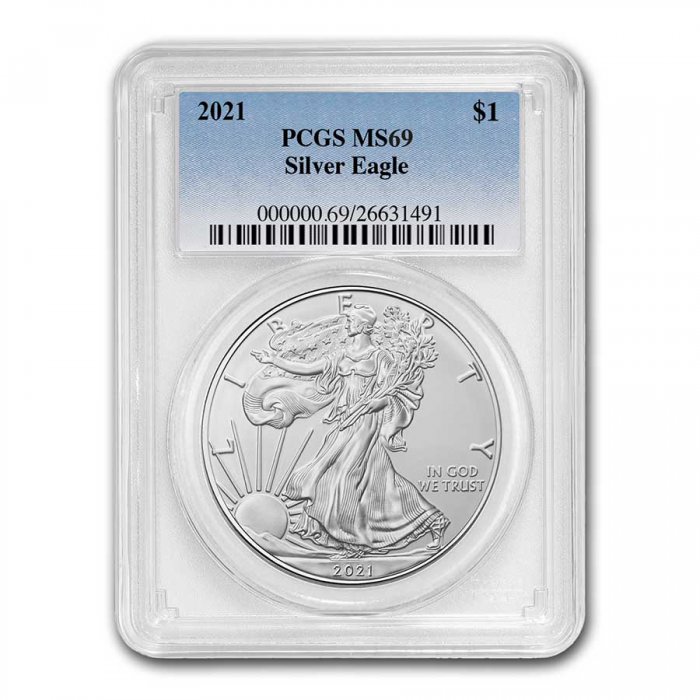 The Silver Eagle is the most popular and recognizable Silver bullion coin in the world. These coins have been graded a near perfect MS-69 by PCGS, the world's premier grading service, adding to their collectibility.