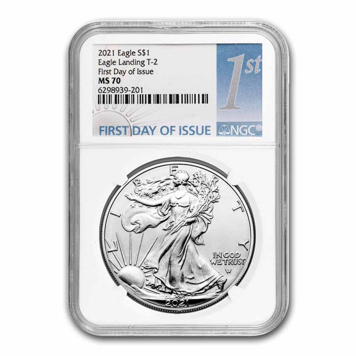 NGC certification adds to the collectible value of the 1 oz 2021 Type 2 American Silver Eagles, the first issue in 35 years to bear a new design. Certified as First Day of Issue, this is one of the first coins of this historic type released from the mint.