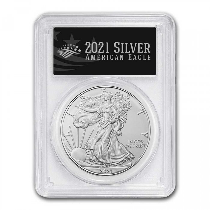 PCGS certification adds to the collectible value of this 2021 Silver Eagle, the last issue of the world's most popular Silver bullion coin to bear the iconic design used since 1986. The APMEXclusive? Black Label adds a unique appearance to this coin.