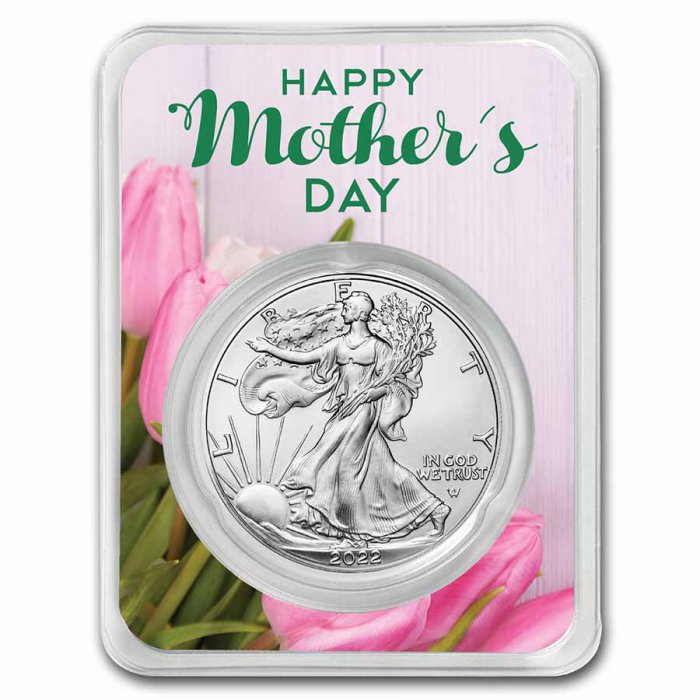 Give your mother an arrangement of flowers that will never wilt! This Silver Eagle is presented in a beautiful colorized Mother's Day themed card, one of many different