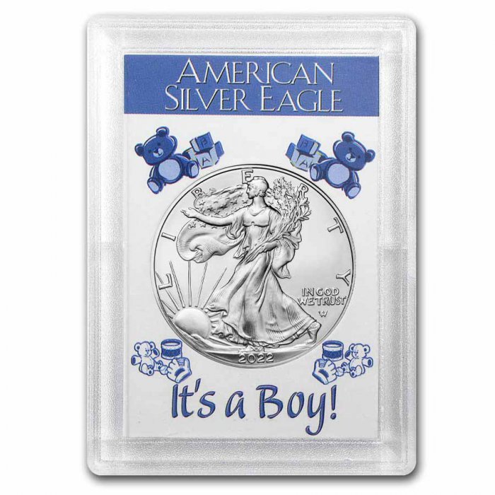 Buy 2022 1 oz Silver Eagle - w/"It's A Boy", Baby Blue Card, In TEP