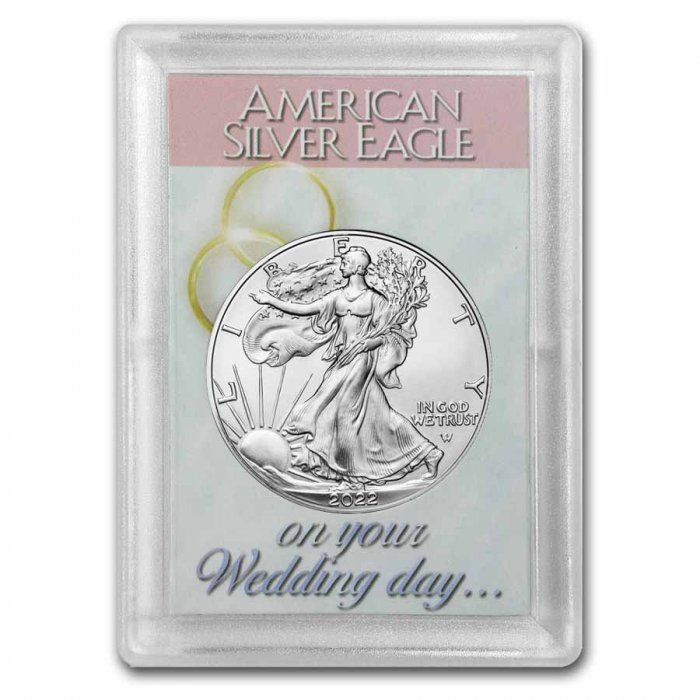 - Each Silver Eagle coin comes housed in a Harris Holder with an insert that features a charming, wedding themed design.