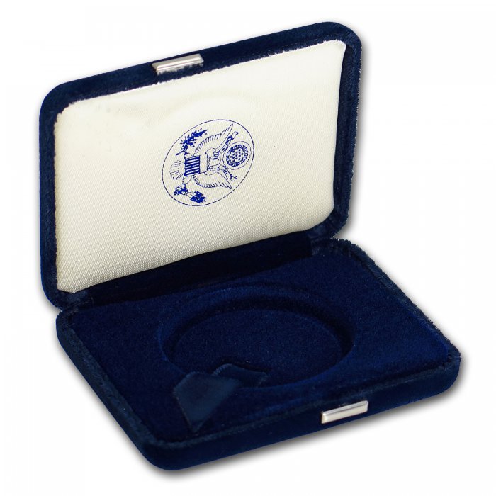 OEM Box Highlights: - Original government packaging from the United States Mint includes velvet box and blue cardboard box base and lid.