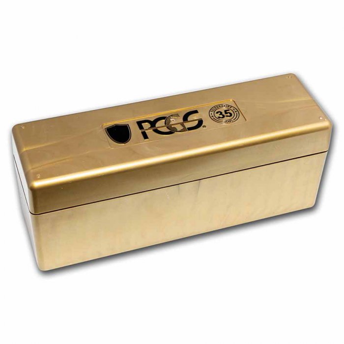 These gold-colored boxes will hold 20 certified coins from PCGS. This is the ideal storage solution for your certified coins. These special edition gold boxes are to celebrate PCGS's 35th anniversary and are only available for a limited time.