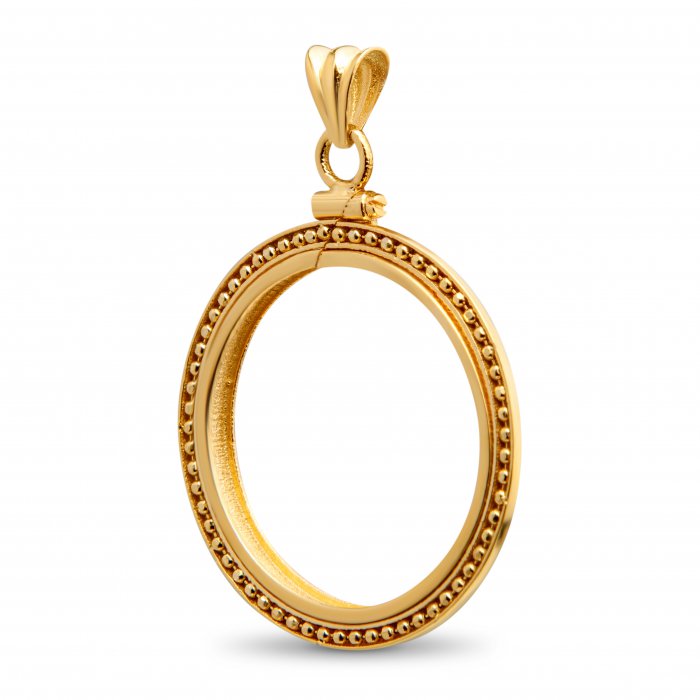 This beautiful 14K Gold screw-top, beaded coin bezel makes the perfect gift or presentation piece for a 1/4 oz Gold coin.