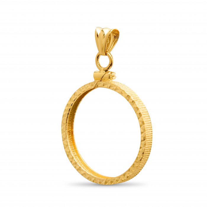 This beautiful 25 mm Gold Screw-top Diamond Cut Bezel fits the following coin:* 1/2 oz Gold Canadian Maple Leaf