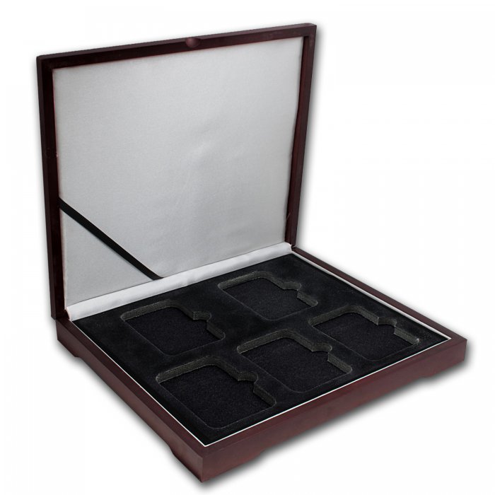This wood display box is a great way to show five similar or complementary coins in the same presentation box. Each box houses and displays five PCGS or NGC encapsulated coins.