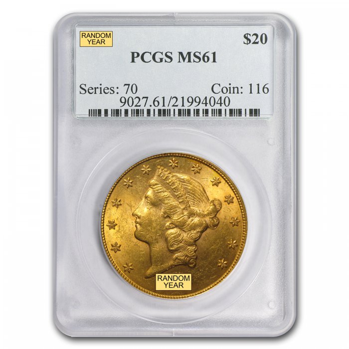 PCGS, one of the top two coin grading services, has guaranteed the Brilliant Mint State-61 condition of this coin, adding collectibility to the beloved design. Enhance your collection by adding this $20 Liberty Gold Double Eagle to your cart today!