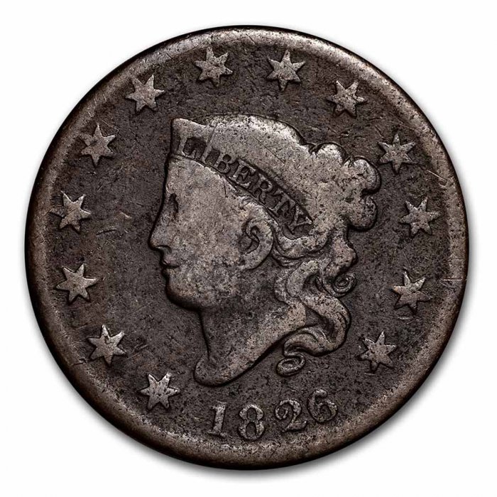 This variety 1826/5 Large Cent features an 1826 struck over an 1825 date resulting in part of the "5" still being visible. Add this 1826/5 Large Cent to your cart and collection today!