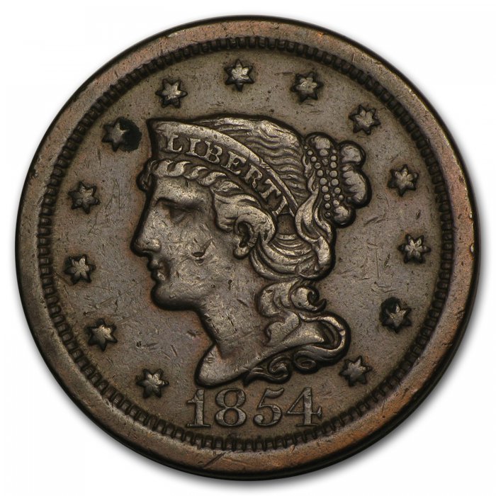 This Very Fine 1854 Large Cent is a great coin to add to any circulated set of early copper type coins.
